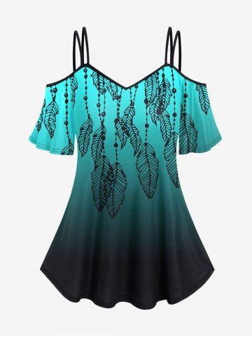 Graphic Tees > Plus Size Feathers Printed Ombre Cold Shoulder T-shirt