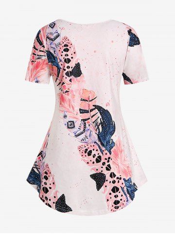 Plus Size Feathers Printed Short Sleeves T Shirt - Light Pink - 4x | Us 26-28
