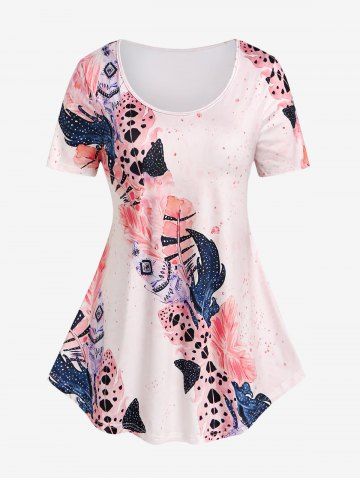 Graphic Tees > Plus Size Feathers Printed Short Sleeves T Shirt