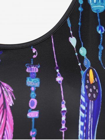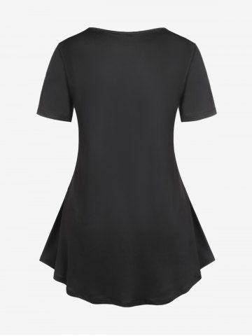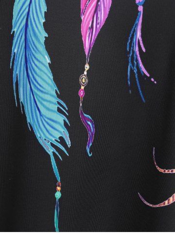 Plus Size Feathers Printed Short Sleeves Tee - Black - 1x | Us 14-16