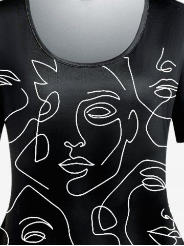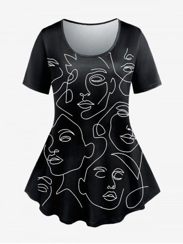Plus Size Figure Face Print Graphic Tee - Black - 4x | Us 26-28