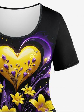 Plus Size Fireworks Flower Leaf Heart Glitter 3D Print T-shirt - Black - 2x