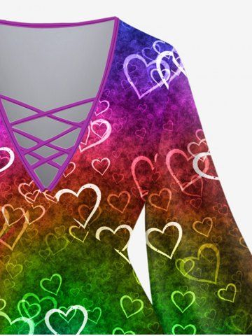 Plus Size Flare Sleeves Heart Ombre Colorblock Print Valentines Lattice Top - Multi-a - M