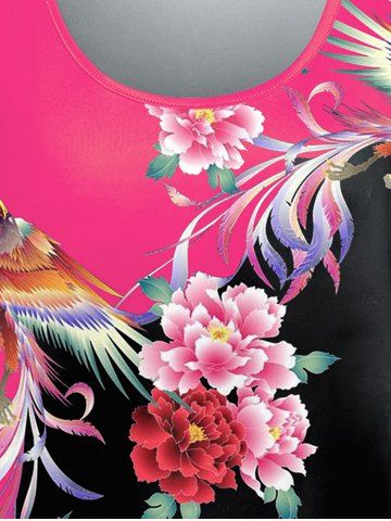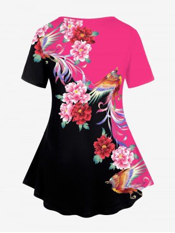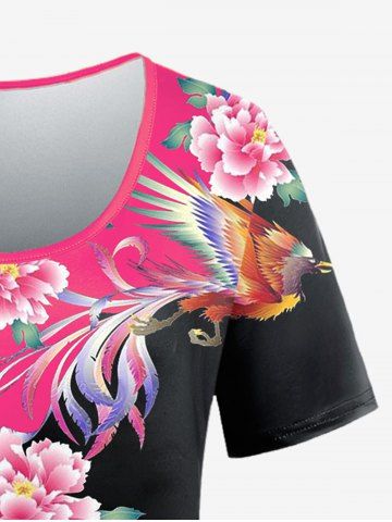 Graphic Tees > Plus Size Floral and Phoenix Print T-shirt