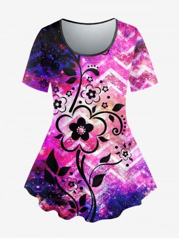 Graphic Tees > Plus Size Floral Galaxy Sparkling Ombre Print Short Sleeves T-shirt