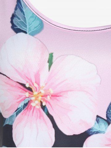 Plus Size Floral Print Colorblock T-shirt - Light Pink - 4x | Us 26-28
