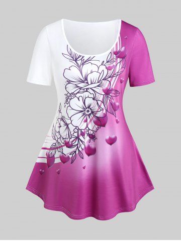 Graphic Tees > Plus Size Floral Print Colorblock Tee