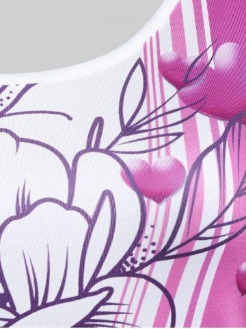 Plus Size Floral Print Colorblock Tee - Multi - 5x | Us 30-32