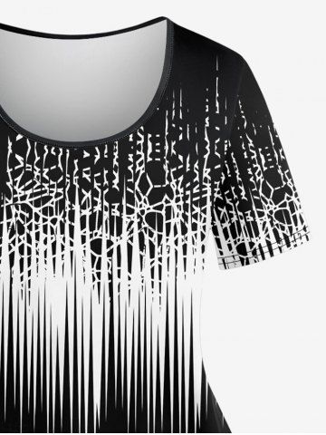 Plus Size Floral Two Tone Light Beam 3D Print T-shirt - Black - M