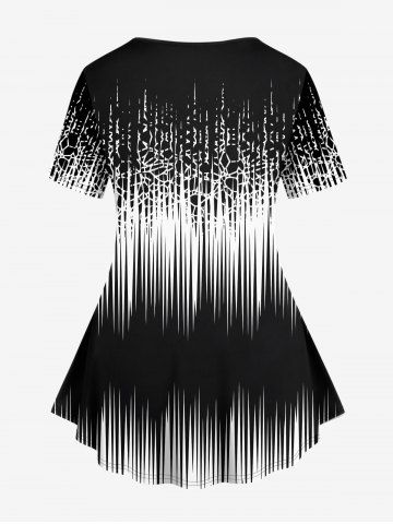Plus Size Floral Two Tone Light Beam 3D Print T-shirt - Black - L