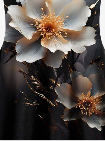 Plus Size Flower Fog 3D Print T-shirt - Black - 2x