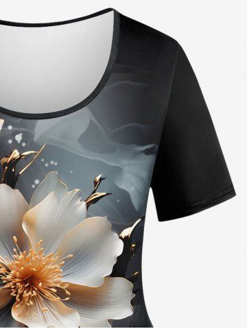 Plus Size Flower Fog 3D Print T-shirt - Black - 4x