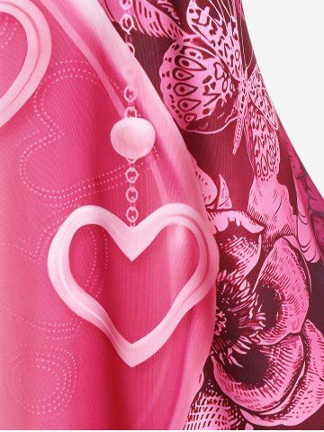 Plus Size Flower Heart Printed Short Sleeves Valentines Tee - Red - 4x | Us 26-28