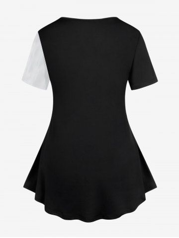 Plus Size Flower Leaf Branch Contrast Colorblock Print T-shirt - Black - Xs