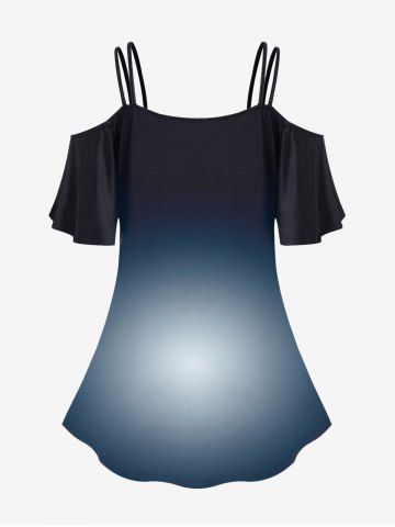 Plus Size Flower Leaf Heart Fog Ombre Colorblock 3D Print Cold Shoulder T-shirt - Black - 5x