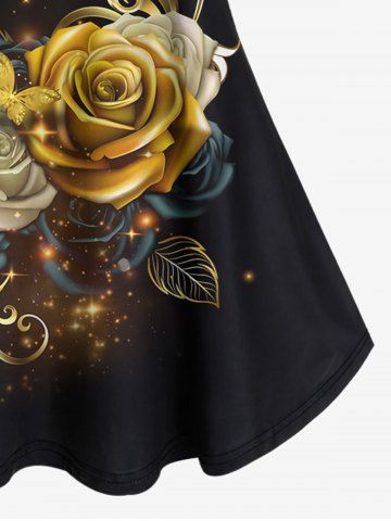 Plus Size Flower Leaves Glitter Print Cold Shoulder T-shirt - Deep Yellow - 5x | Us 30-32