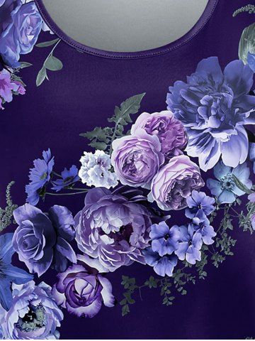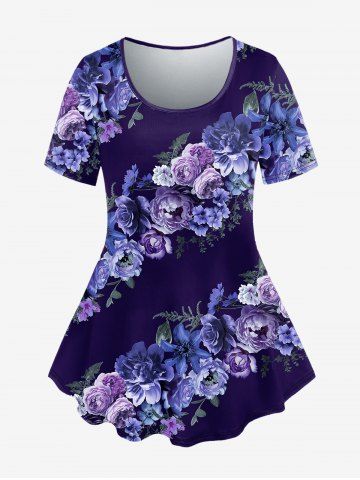Plus Size Flower Leaves Print T-shirt - Concord - 3x