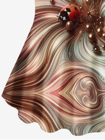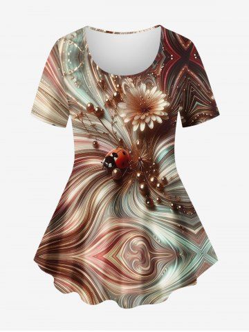 Plus Size Flower Pearl Ladybug Earth Tome Swirl Pattern Print T-shirt - Multi-a - 2x