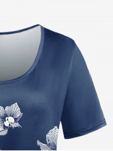 Plus Size Flower Printed Short Sleeves Tee - Deep Blue - M | Us 10