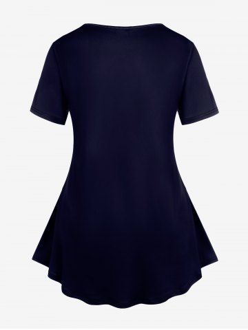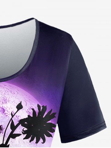 Renaissance Plus Size Galaxy Angel Moon Plant Print Short Sleeves T-shirt - Purple - M