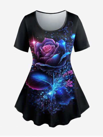 A*****a5Plus Size Galaxy Flower Glitter Print T-shirtColor: BLACK Size: 6XBeautiful fabric and very soft and comfortable. Fits perfectly and I love it.
