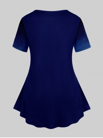 Plus Size Galaxy Flower Wreath Owl Print T-shirt - Deep Blue - M