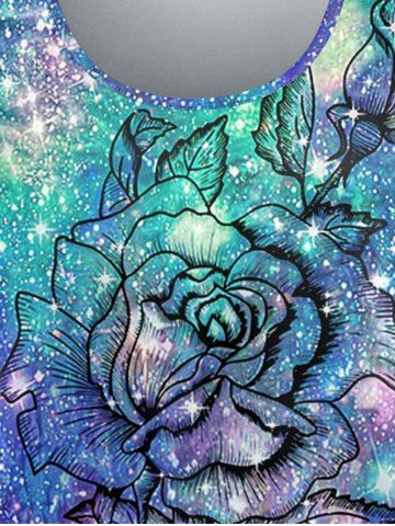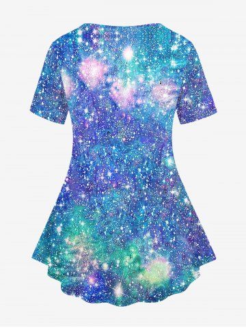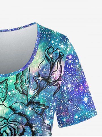 d*****z5Plus Size Galaxy Glitter Flower Print T-shirtColor: BLUE Size: 2X | US 18-20Size was perfect. Great outfit love the flow of the bottom. It looks amazing. I am definitely satisfied and will order again