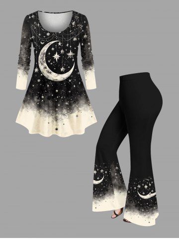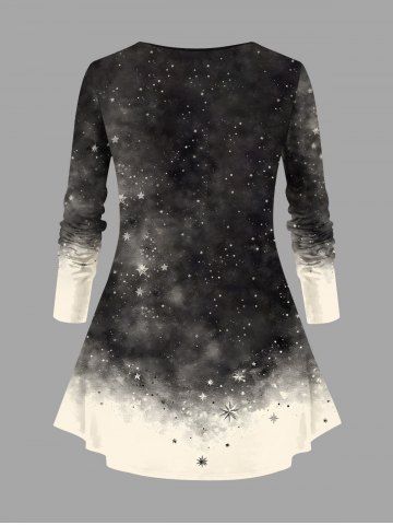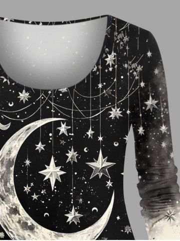 Plus Size Galaxy Moon Star Tassel Print Long Sleeves T-shirt - Black - 2x