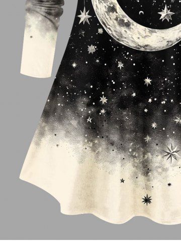 Graphic Tees > Plus Size Galaxy Moon Star Tassel Print Long Sleeves T-shirt