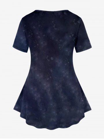 Renaissance Plus Size Galaxy Moon Wings Cat Angel Print T-shirt - Black - M