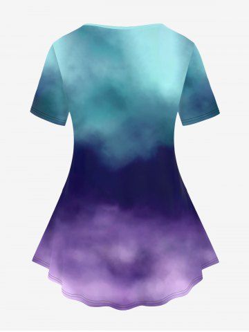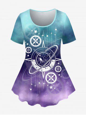 Plus Size Galaxy Ombre Colorblock Print T-shirt - Multi - L