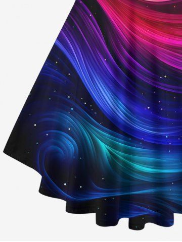 Graphic Tees > Plus Size Galaxy Rainbow Color Swirls Glitter Print Lattice Crisscross Flare Sleeve T-shirt