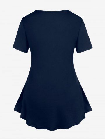 Plus Size Galaxy Rose Flower Glitter 3D Print T-shirt - Black - L