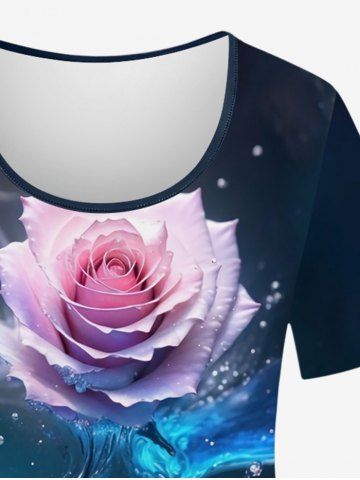 Graphic Tees > Plus Size Galaxy Rose Flower Glitter 3D Print T-shirt