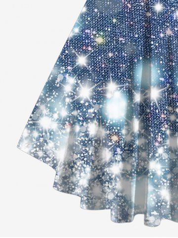 Plus Size Galaxy Sparkling Sequin Glitter Knitted 3D Print Lattice Crisscross Flare Sleeve T-shirt - Blue - L