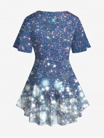 d*****h4Galaxy Sparkling Sequin Glitter Jeans 3D Printed Lattice Crisscross Flare Sleeve T-shirt And Flare Pants Plus Size 70s 80s OutfitColor: BLUEI love outfit