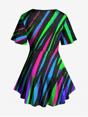 Graphic Tees > Plus Size Galaxy Stripes Graffiti Print Lattice Crisscross T-shirt