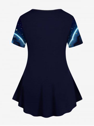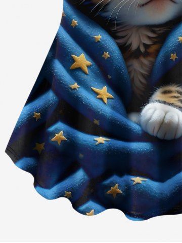Plus Size Glitter 3D Cute Cat Blanket Stars Galaxy Print Short Sleeves T-shirt - Deep Blue - 6x