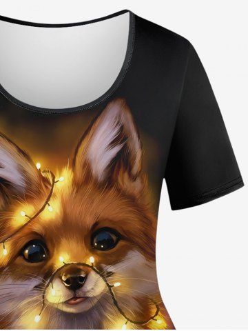 Plus Size Glitter Coloured Light Dog Print Short Sleeves T-shirt - Black - 2x