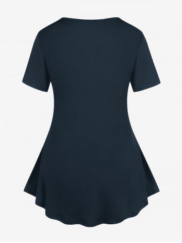 Plus Size Glitter Heart Patriotic American Flag Print Women T-shirt - Black - 6x