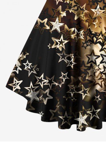 Plus Size Glitter Light Beam Stars Print Lattice Ombre Top - Black - 4x
