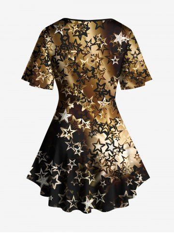Plus Size Glitter Light Beam Stars Print Lattice Ombre Top - Black - 5x