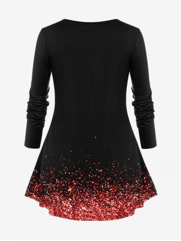 Plus Size Valentines Glitter Lip Printed Long Sleeves Tee - Red - S | Us 8
