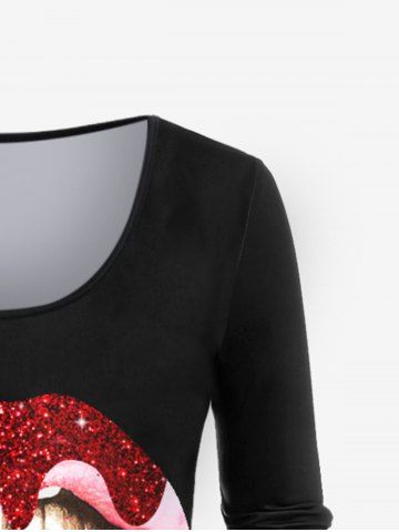 Graphic Tees > Plus Size Valentines Glitter Lip Printed Long Sleeves Tee