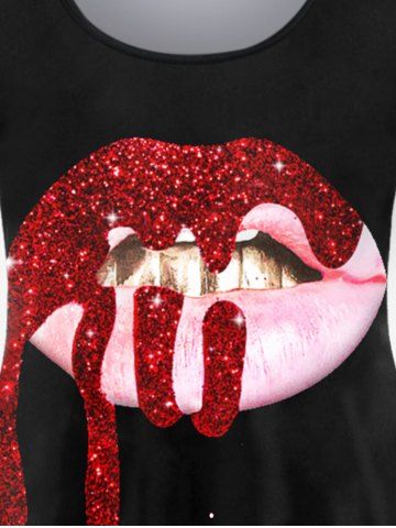 Plus Size Valentines Glitter Lip Printed Long Sleeves Tee - Red - 2x | Us 18-20