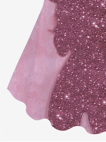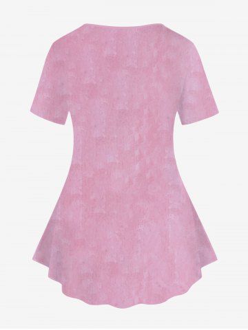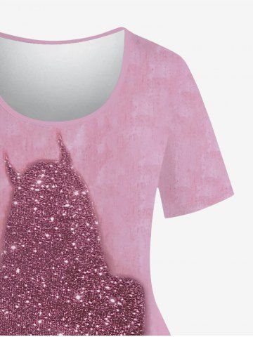Plus Size Glitter Sequins Bunny Print Short Sleeves T-shirt - Light Pink - Xs