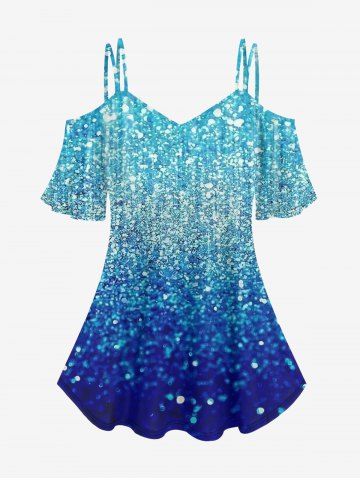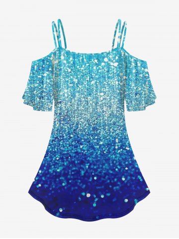 m*****s5Plus Size Cold Shoulder Glitter Print T-shirtColor: BLACK Size: 3X | US 22-24Love this top. It's so perfect for going out on the town. or going out for date night. It's so soft and the material is super flowy. perfect top for the summer. ordered 3XL but could of sized down. definitely recommend this shirt. absolutely gorgeous!