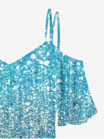 m*****s5Plus Size Cold Shoulder Glitter Print T-shirtColor: BLACK Size: 3X | US 22-24Love this top. It's so perfect for going out on the town. or going out for date night. It's so soft and the material is super flowy. perfect top for the summer. ordered 3XL but could of sized down. definitely recommend this shirt. absolutely gorgeous!
