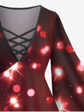 Plus Size Glitter Sparkling Christmas Light Print Ombre Lattice Long Sleeves T-shirt - Deep Red - 4x