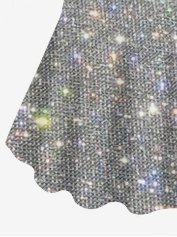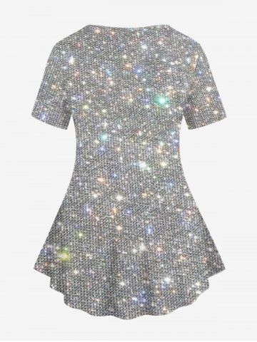 Plus Size Glitter Sparkling Sequin 3D Print Crew Neck T-shirt - Silver - 5x